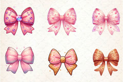 Charm with this Coquette Valentine Bow Clipart Bundle, featuring elegant bow designs, perfect for fashionable Valentine's crafts.