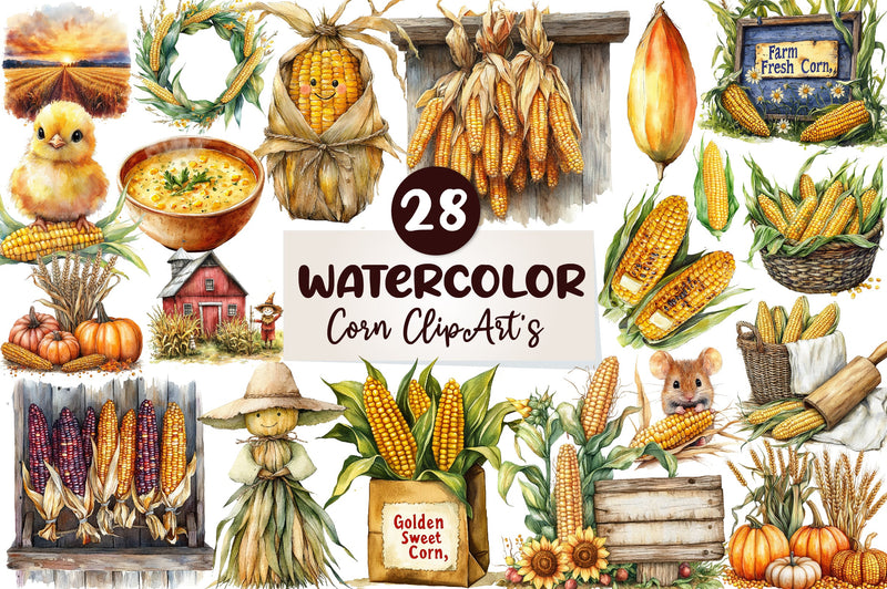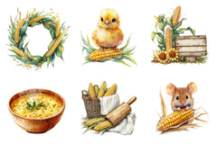 Harvest with this Corn's Clipart Bundle, featuring corn vegetable designs, perfect for farming crafts.
