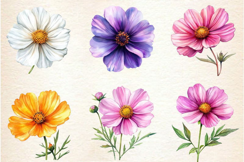 Bloom with this Cosmos Flower Bloom Clipart Bundle, featuring delicate cosmos designs, perfect for wildflower garden crafts.