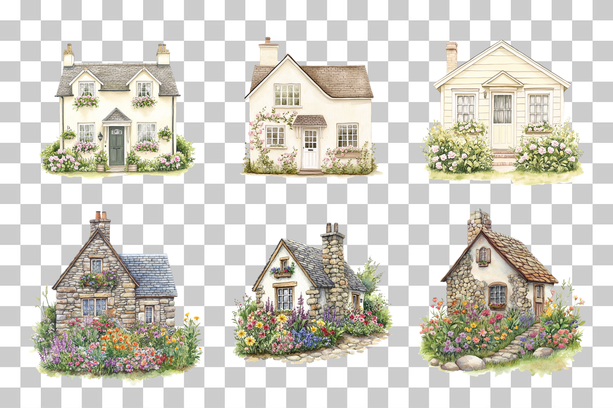 Country Cottage Garden House Clipart Bundle