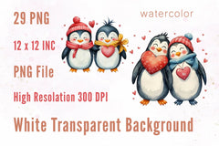 Romantic penguin couples perfect for Valentine's Day and animal projects.