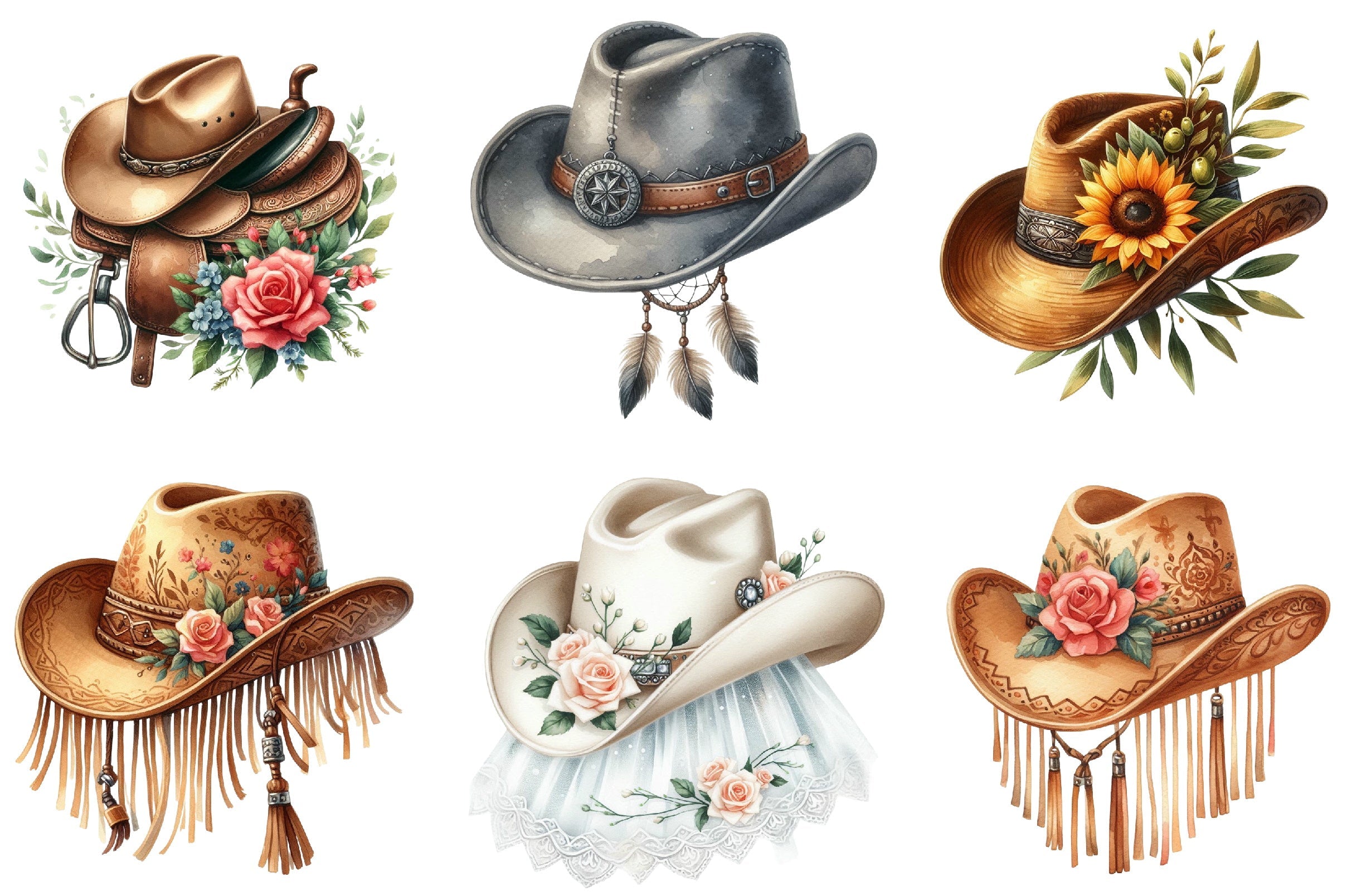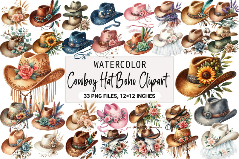 Unleash your creativity with our Cowboy Hat Boho Clipart Bundle, featuring a stunning collection of rustic and chic cowboy hat designs. Perfect for crafting unique invitations, digital scrapbooking, and bohemian-themed projects. Elevate your artistic endeavors with these high-quality, versatile clipart images, ideal for adding a touch of western charm to any creation. Download now and start designing with flair!