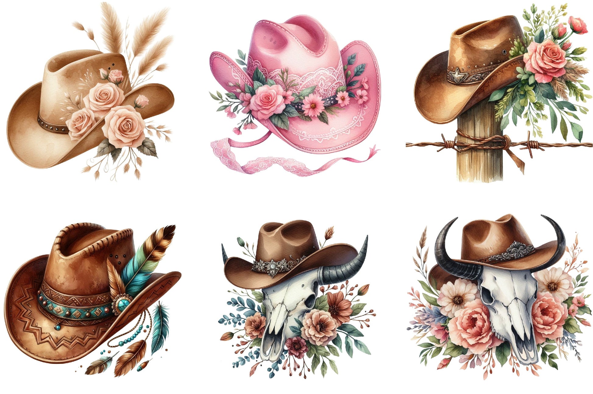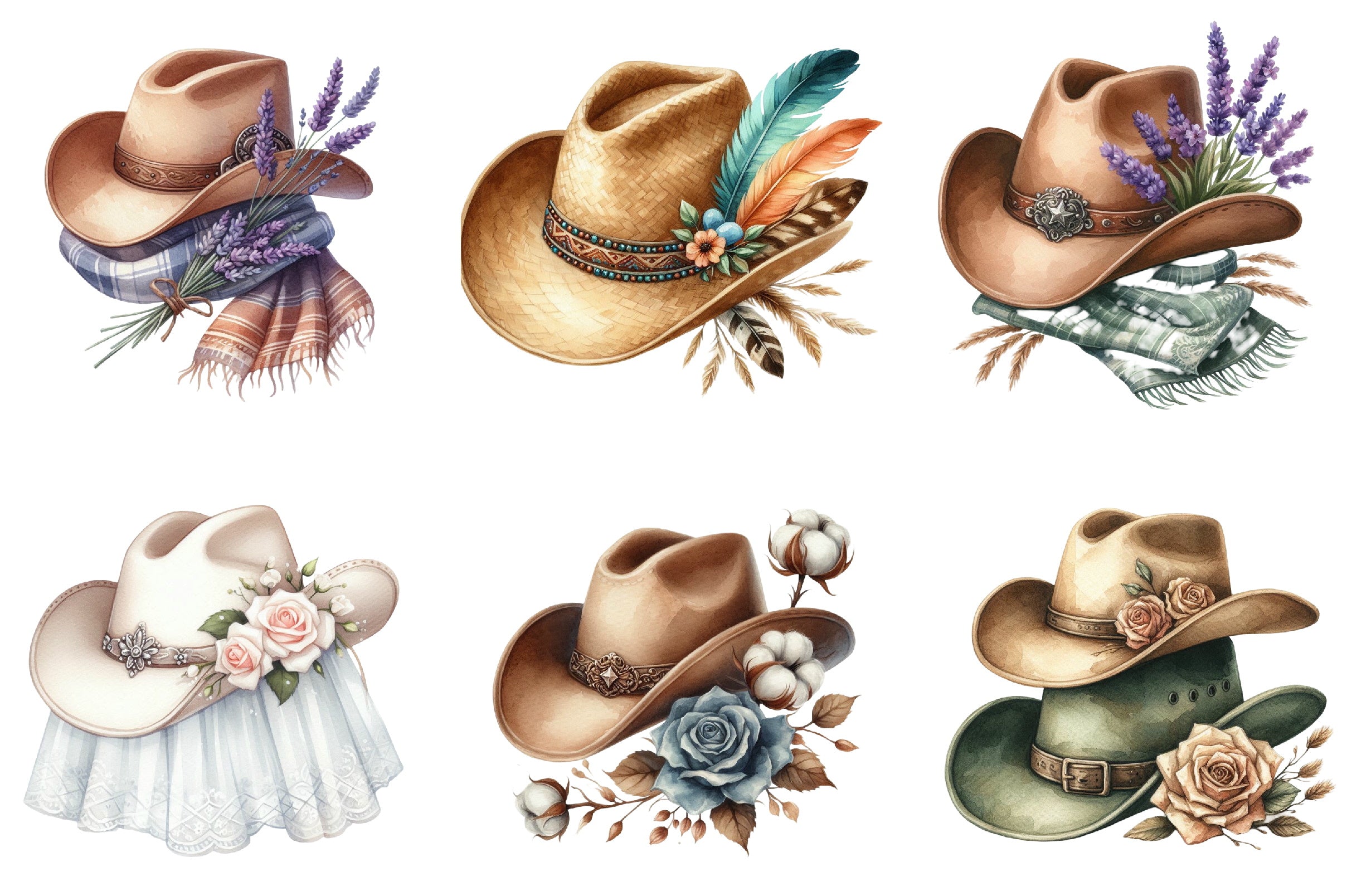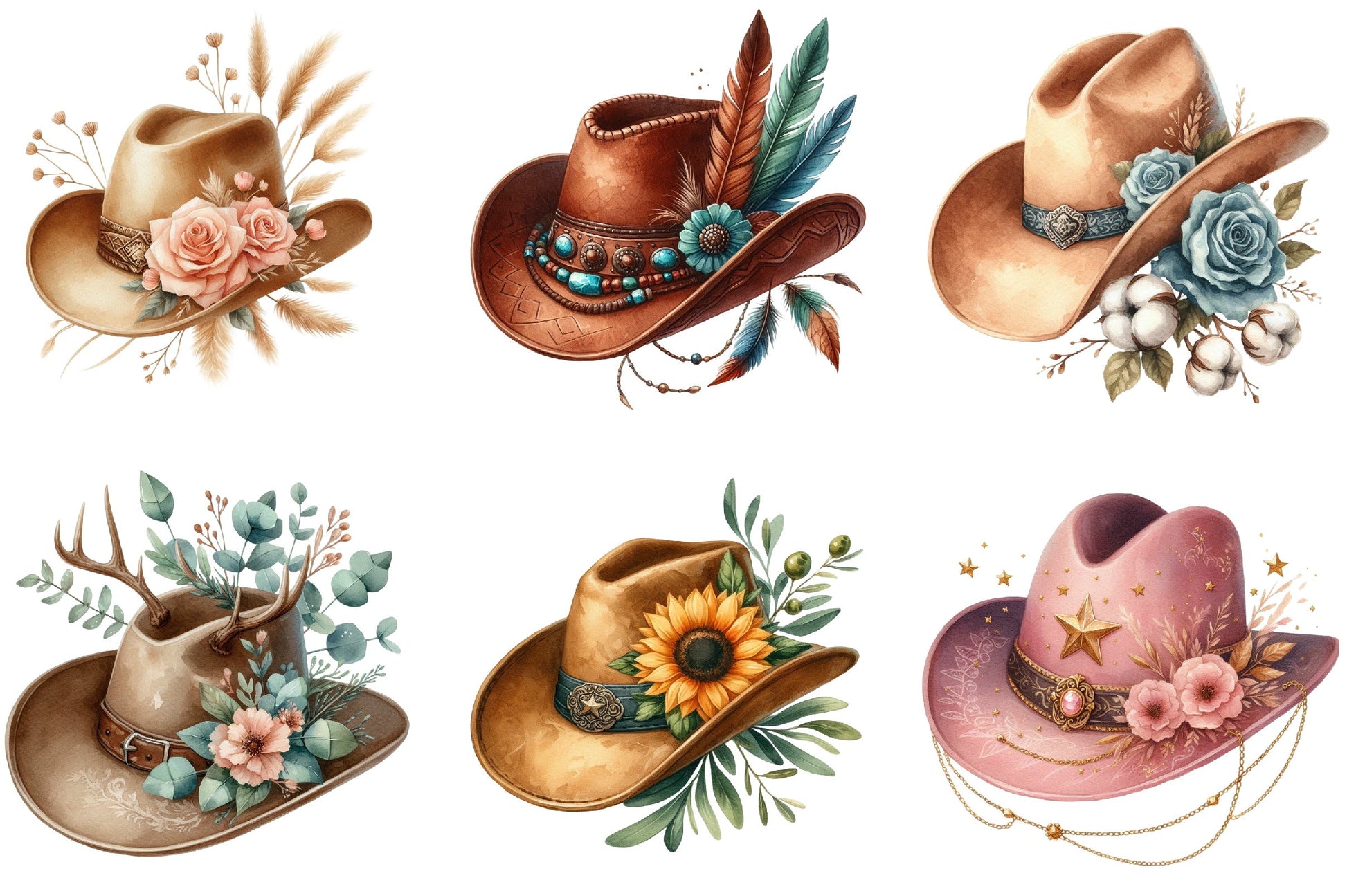 Cowboy Hat Boho Clipart Bundle