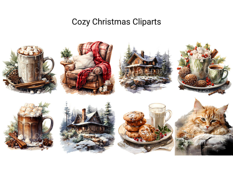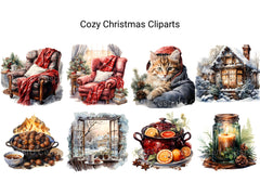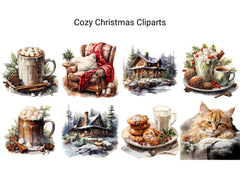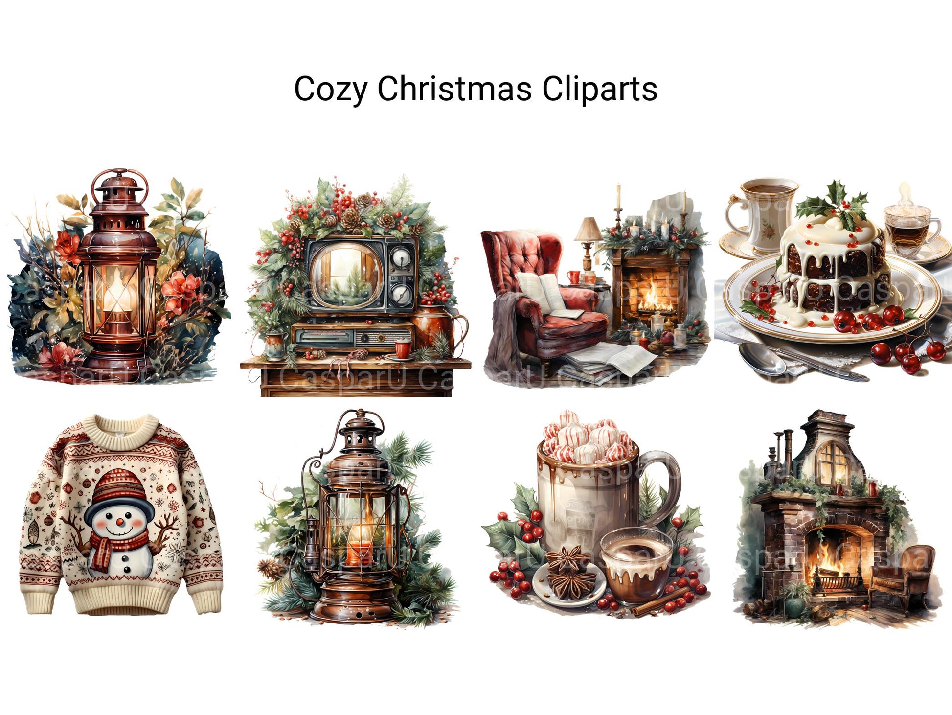 Embrace the comfort and joy of the season with our Cozy Christmas clip art. These digital illustrations depict warm and inviting scenes, from crackling fireplaces to snug blankets, perfect for adding a touch of hygge to your Christmas designs, whether for cards, home decor, or social media posts, enveloping viewers in the cozy embrace of holiday comfort and contentment.
