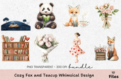 Unleash creativity with the Cozy Fox and Teacup Whimsical Design Clipart Bundle, perfect for charming DIY projects and delightful nursery decor.