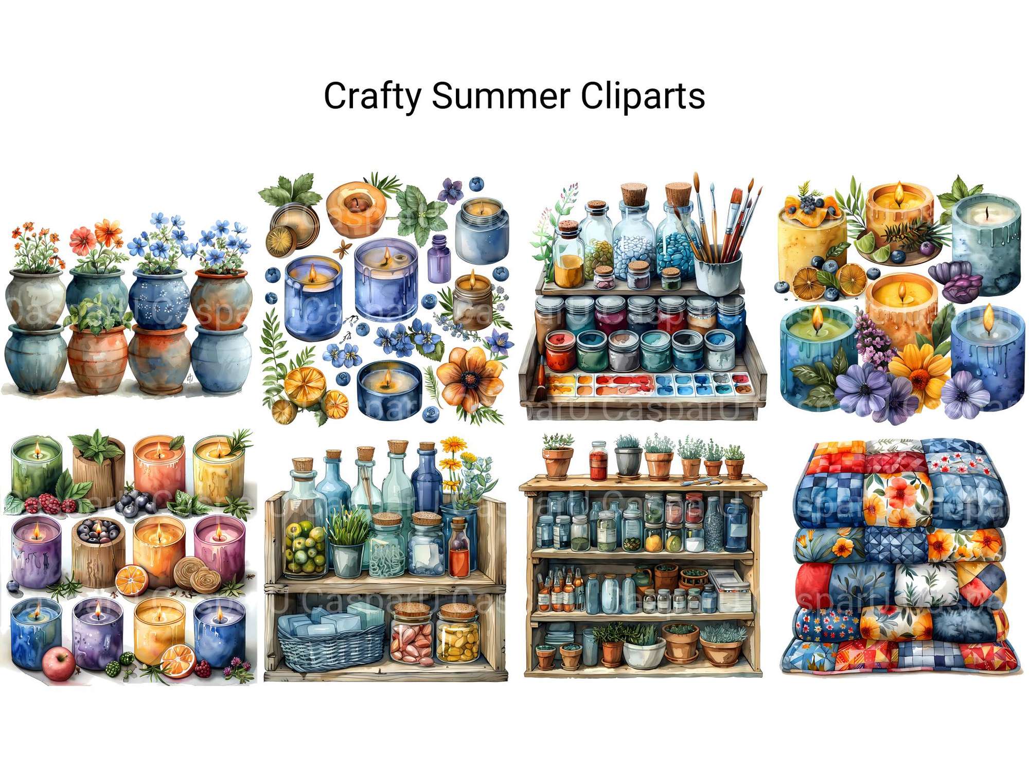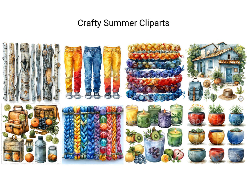 Get creative with our Crafty Summer clipart, filled with fun DIY project elements, colorful craft supplies, and inspiring summer crafting ideas. This collection is perfect for crafters and DIY enthusiasts looking to add a splash of summer creativity to their projects, with endless possibilities for customization.