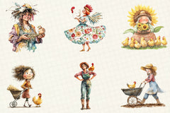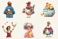 Crazy Chicken Lady Clipart Bundle