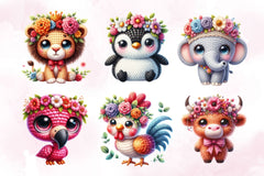 Stitch with this Crochet Animals And Flower Clipart Bundle, featuring crocheted creature flower designs, perfect for craft garden projects.