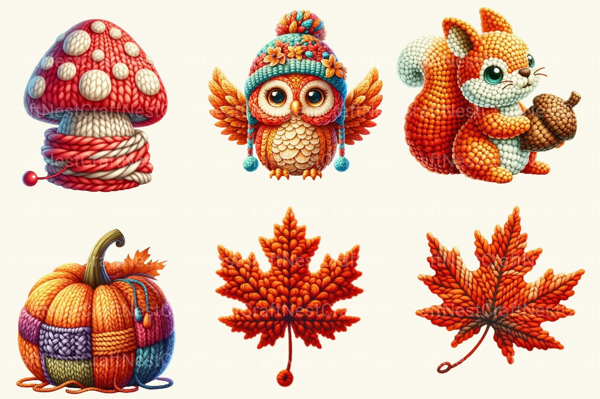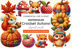 Enhance your seasonal projects with our Crochet Autumn Clipart Bundle, featuring charming fall-themed designs perfect for cozy crafts and festive decorations.