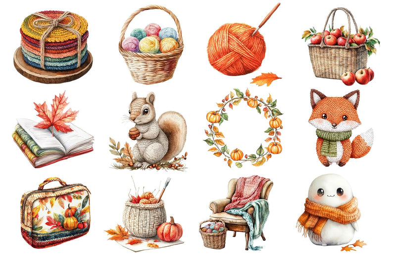 Stitch with this Crochet Autumn Clipart Bundle, featuring cozy crochet fall designs, perfect for craft enthusiast projects.