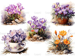 Embrace the crisp autumn air with our Crocus in the Crisp clip art. These whimsical digital illustrations showcase crocus flowers, their delicate blooms emerging against a backdrop of autumn foliage, perfect for adding a touch of seasonal whimsy and floral beauty to your designs, whether for fall-themed decorations, floral arrangements, or botanical projects, capturing the delicate charm of crocus flowers in enchanting detail.