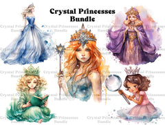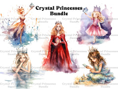 Enter a realm of shimmering beauty with our Crystal Princesses clip art. These enchanting digital illustrations depict princesses adorned with crystals and gemstones, radiating with ethereal light and magic, perfect for adding a touch of sparkle and mystique to your designs, whether for fantasy-themed projects, invitations, or digital scrapbooking, capturing the elegance and allure of royalty.