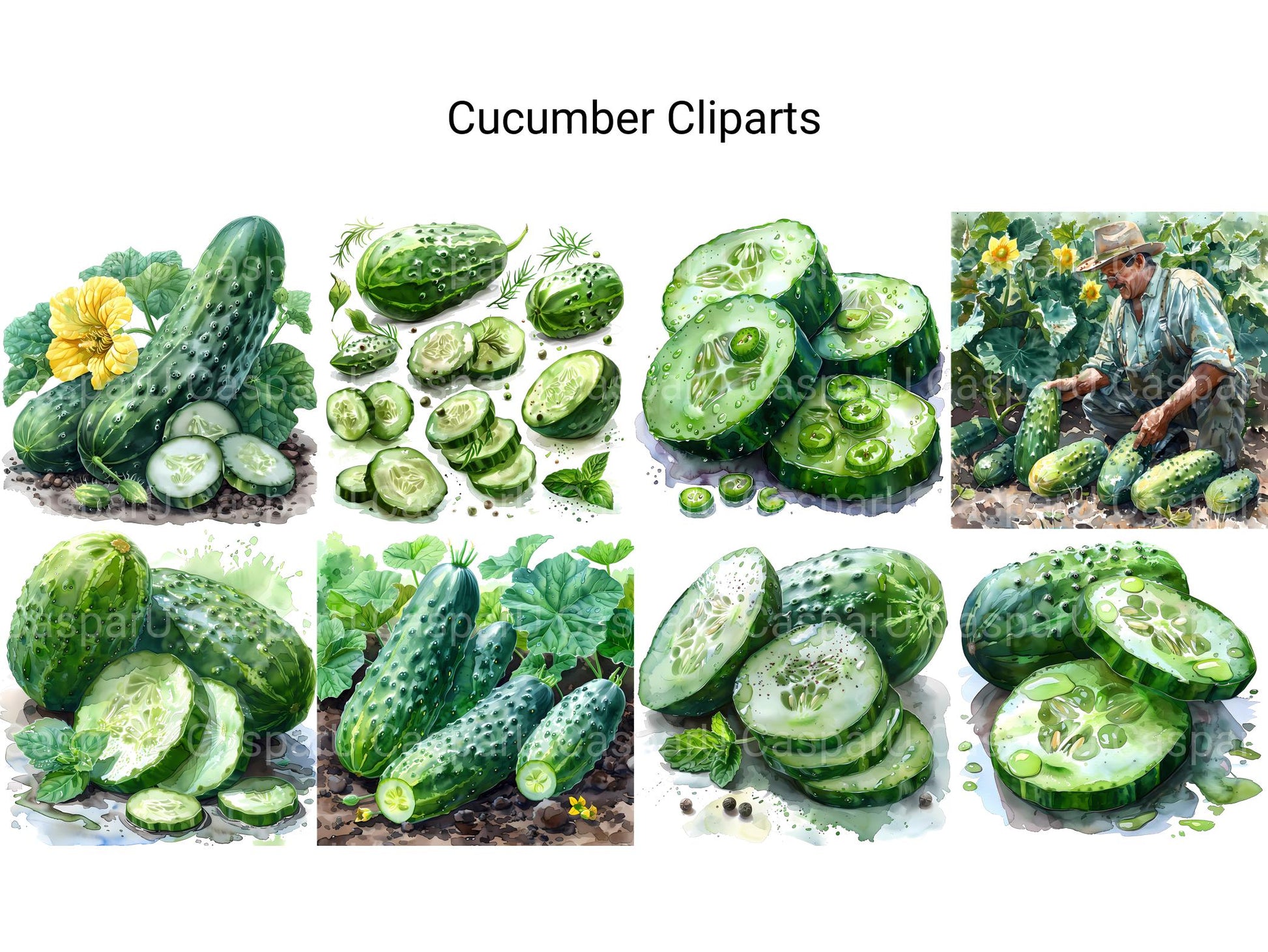 Refresh your designs with our Cucumber clipart. Featuring realistic and detailed illustrations of crisp cucumbers, this clipart adds a natural and fresh touch to any project. Ideal for themes related to healthy eating and gardening.