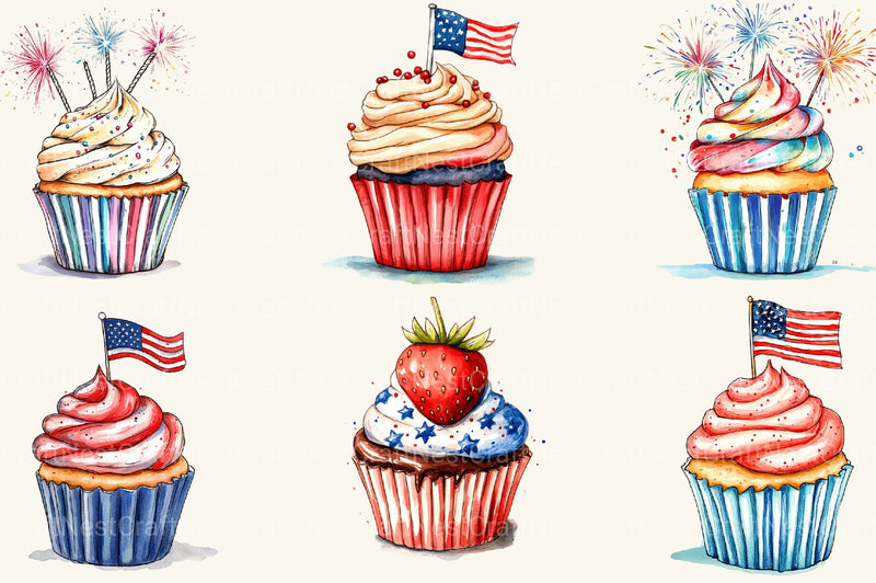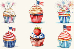 Sweeten with this Cupcake Patriotic 4th Of July Clipart Bundle, featuring American dessert designs, perfect for Independence Day baking crafts.