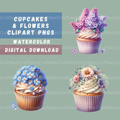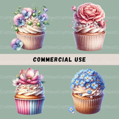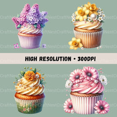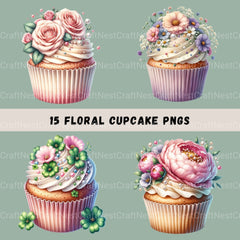 Bake with this Cupcakes Floral 15 Clipart Bundle, featuring floral cupcake designs, ideal for cupcake flower crafts.