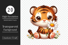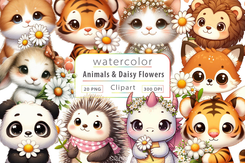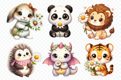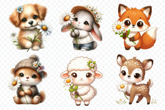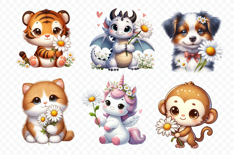 Cute Animals & Daisy Flowers Clipart Bundle 4