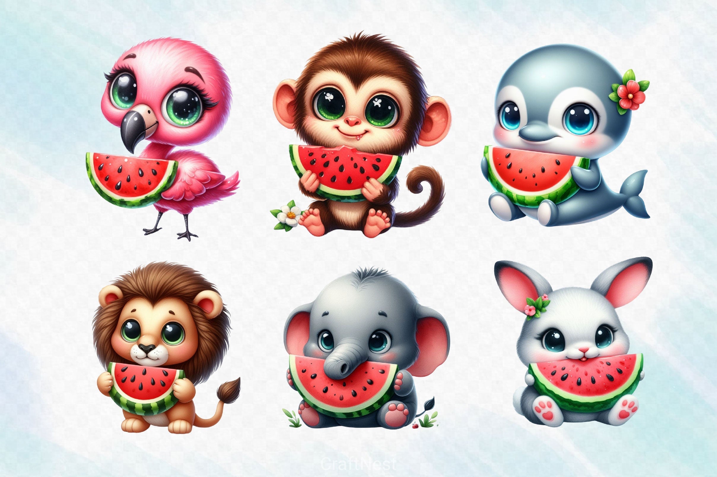 Cute Animals Eating Watermelon Clipart Bundle