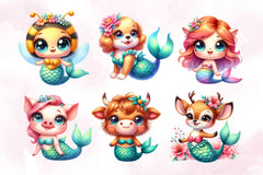 Cute Animals Mermaid Clipart Bundle