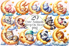 Cute Animals Sleep On Moon Clipart Bundle 2