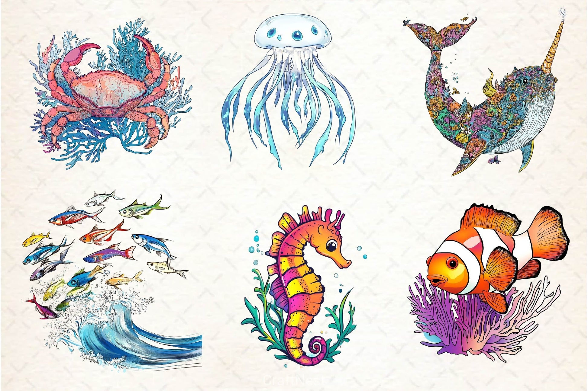 Dive with this Cute Animals Under The Sea Clipart Bundle, featuring underwater creature designs, perfect for ocean animal crafts.