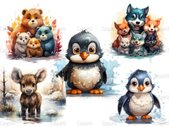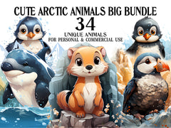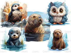 Brave the frosty wilderness with our Cute Arctic Animals clip art. These adorable digital illustrations feature lovable Arctic creatures, from playful polar bears to curious penguins, set against icy landscapes and shimmering auroras, perfect for adding a touch of Arctic charm and winter wonder to your designs, whether for children's illustrations, winter-themed decorations, or wildlife artwork, inviting viewers to explore the magical world of the Arctic in charming detail.