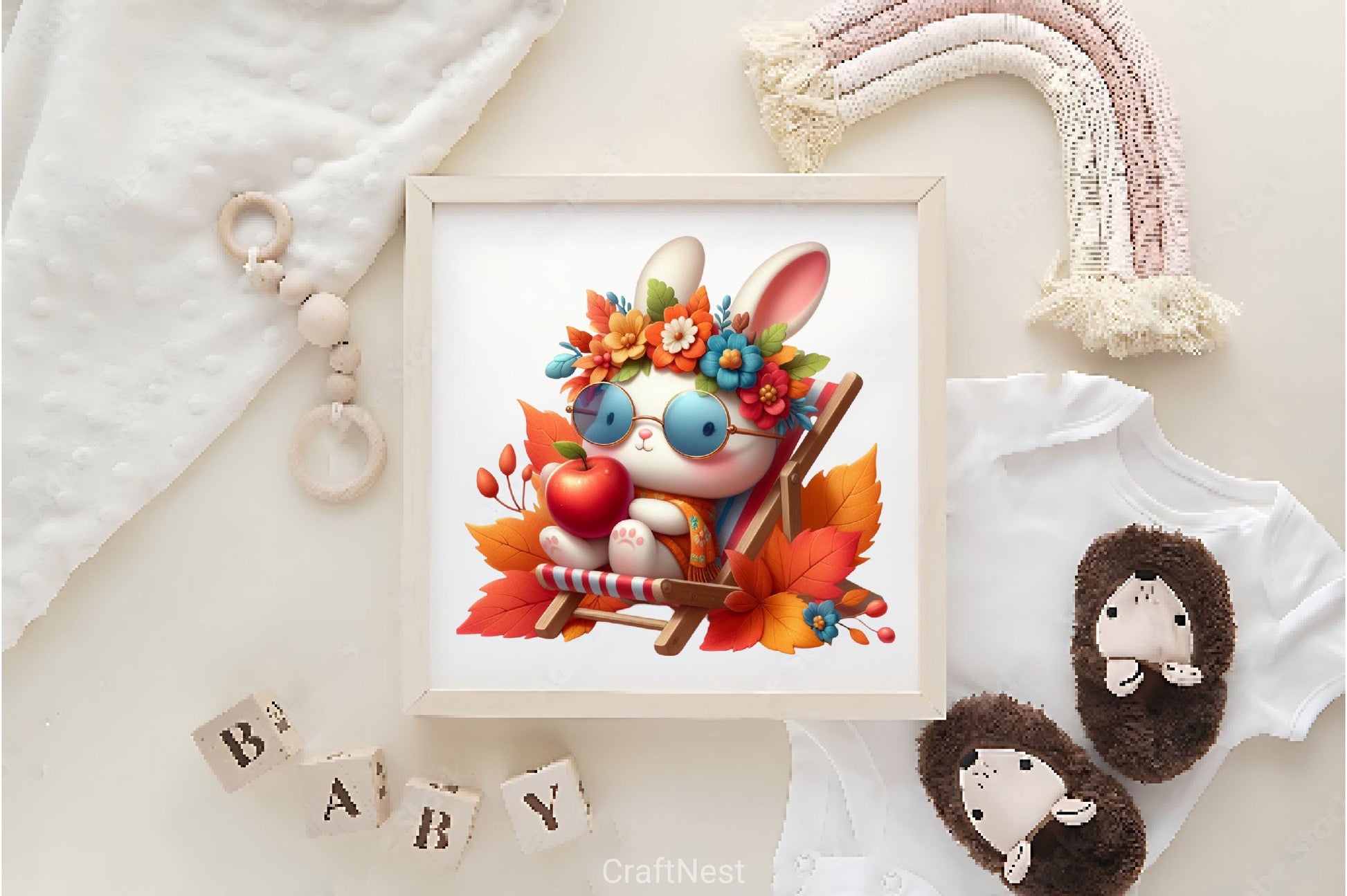 Adorable bunnies in autumn settings for fall seasonal projects.