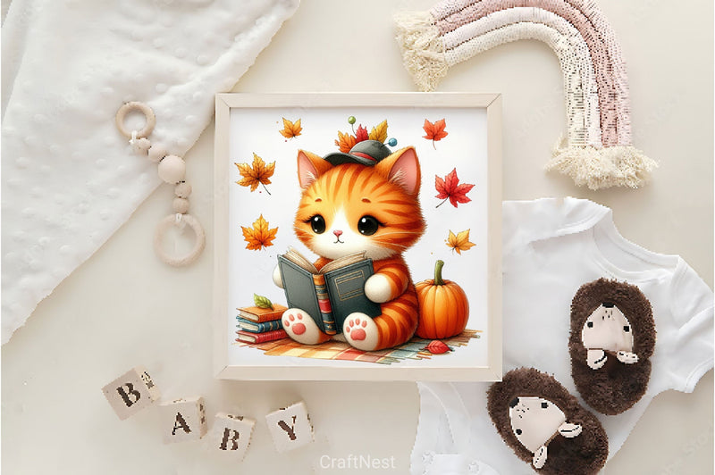 Purr with this Cute Autumn Cat Clipart Bundle, featuring seasonal feline designs, perfect for fall pet crafts.