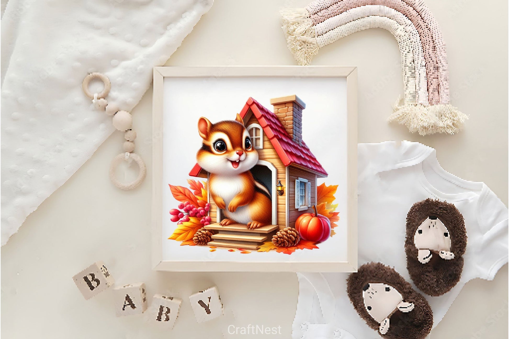 Adorable chipmunks in autumn settings for fall woodland projects.
