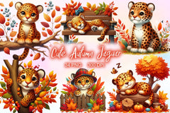 Adorable jaguars in autumn settings for fall wild animal projects.