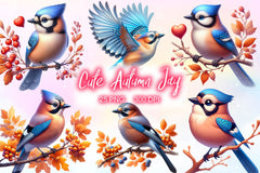 Perch with this Cute Autumn Jay Clipart Bundle, featuring adorable jay bird designs, perfect for fall bird watching crafts.