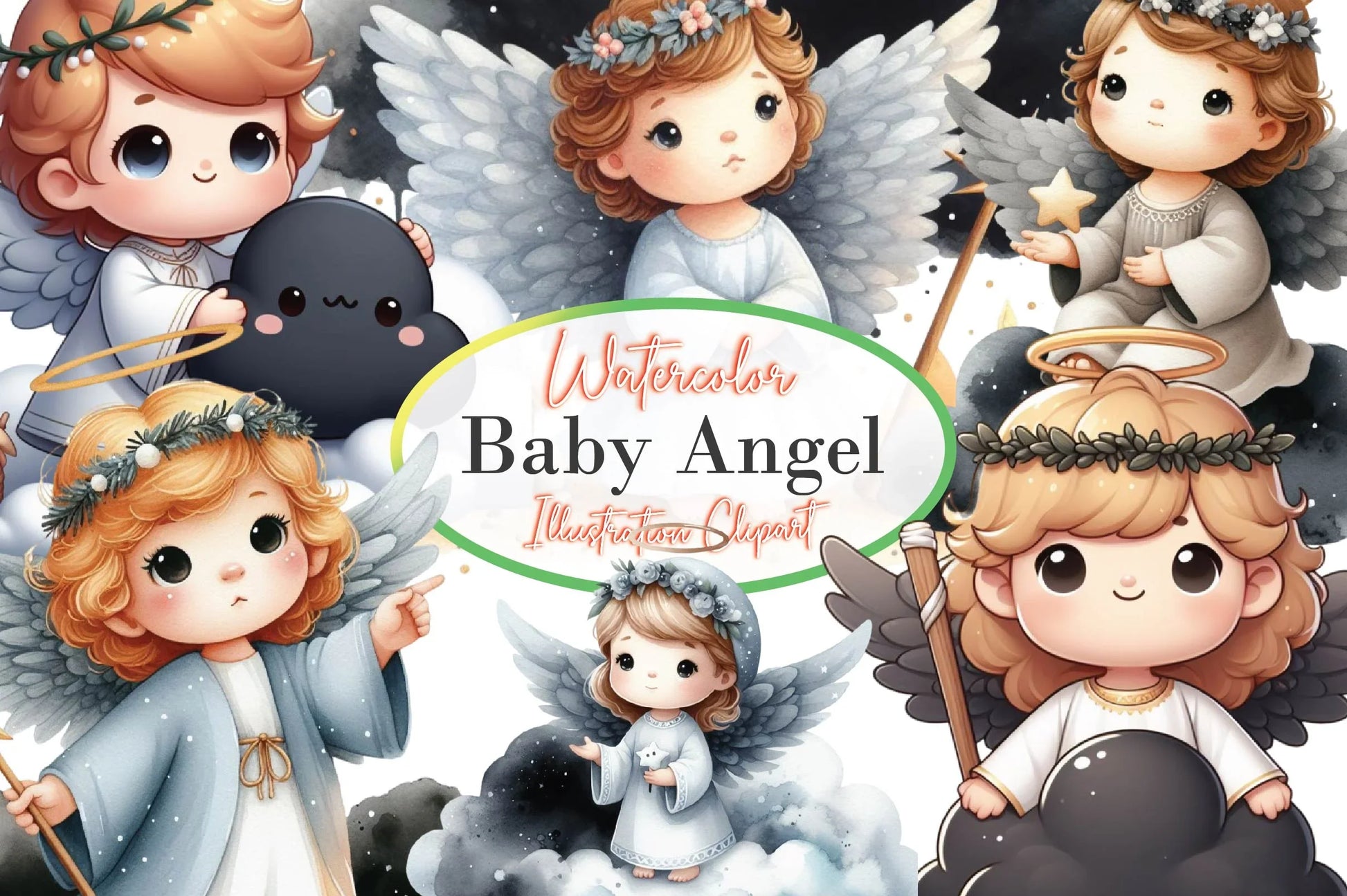 Delight in the Cute Baby Angel Clipart Bundle, showcasing charming baby angel designs perfect for heavenly nursery projects and whimsical crafts.
