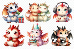 Love with this Cute Baby Dragon Valentine Clipart Bundle, featuring romantic baby dragon designs, perfect for fantasy valentine crafts.
