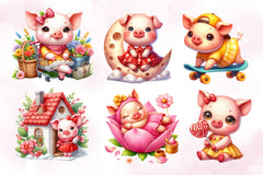 Oink with this Cute Baby Pig Clipart Bundle, featuring adorable piglet designs, perfect for farm baby animal crafts.