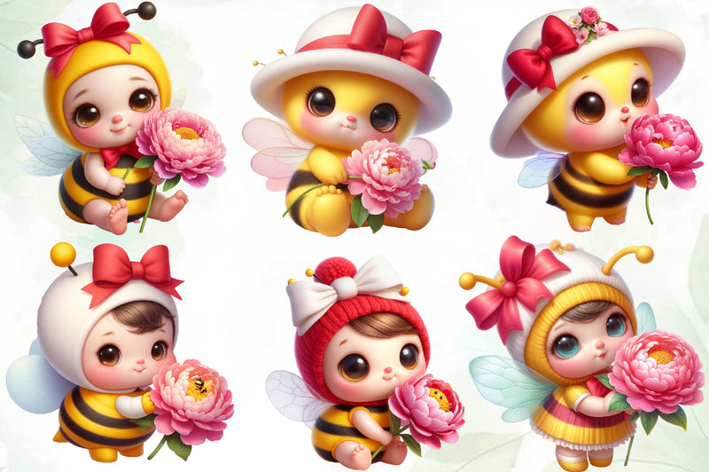 Buzz with this Cute Bee Clipart Bundle, featuring cute bee designs, ideal for adorable nature crafts.