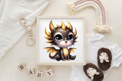 Roar with this Cute Black And Gold Baby Dragon Clipart Bundle, featuring elegant dragon designs, ideal for baby dragon crafts.