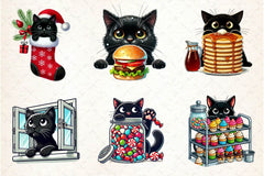 Cute Black Cat Peeking Clipart Bundle 4
