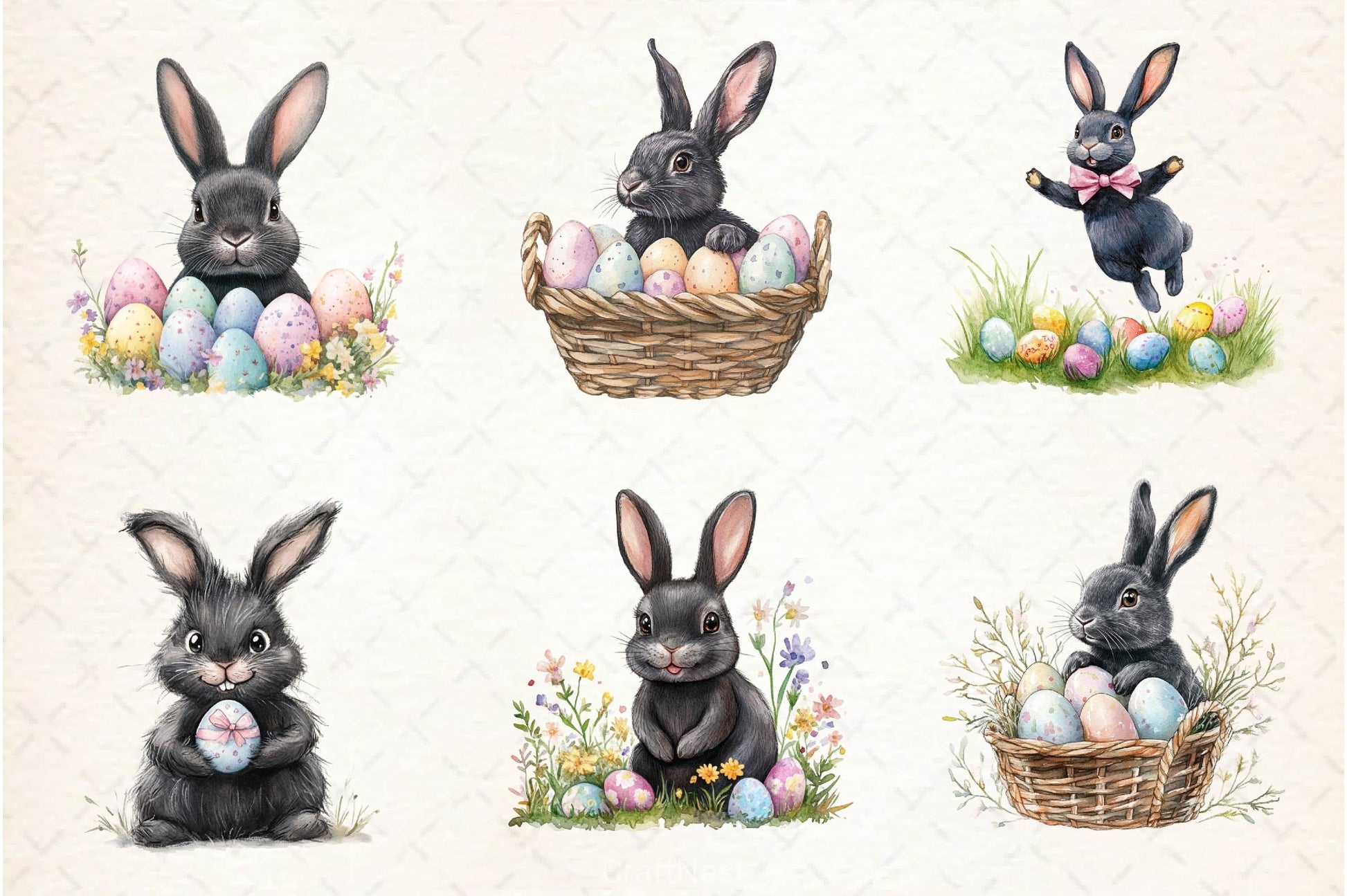Adorable black Easter bunnies for diverse spring celebration projects.