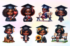 Graduate with this Cute Black Graduation Girl Clipart Bundle, featuring diverse academic achievement designs, perfect for educational celebration crafts.