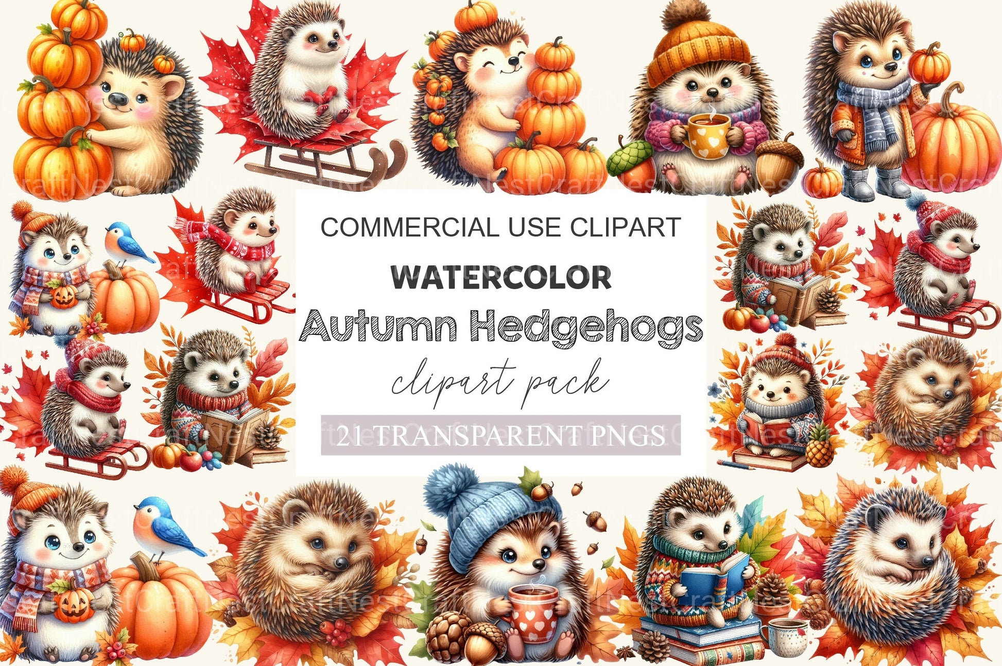 Cuddle with this Cute Cartoon Autumn Hedgehogs Clipart Bundle, featuring adorable fall hedgehog designs, perfect for woodland crafts.