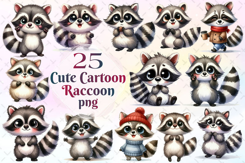 Mask with this Cute Cartoon Raccoon Clipart Bundle, featuring adorable woodland creature designs, perfect for forest animal crafts.