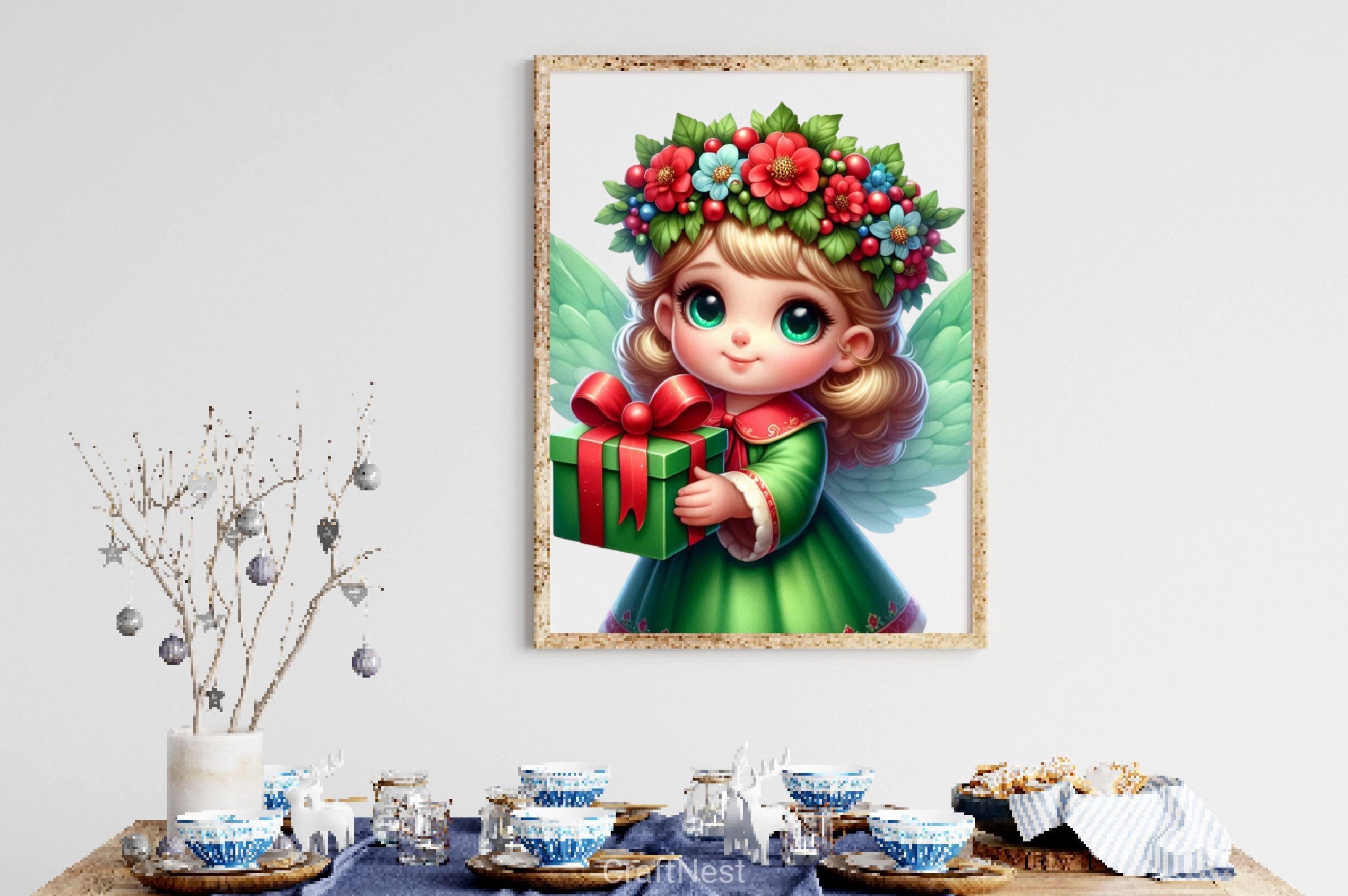Bless with this Cute Christmas Angels Clipart Bundle, featuring adorable heavenly designs, perfect for spiritual Christmas crafts.
