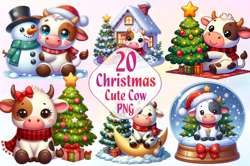 Cute Christmas Cow Clipart Bundle 2