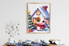 Adorable cows celebrating Christmas for holiday farm projects.