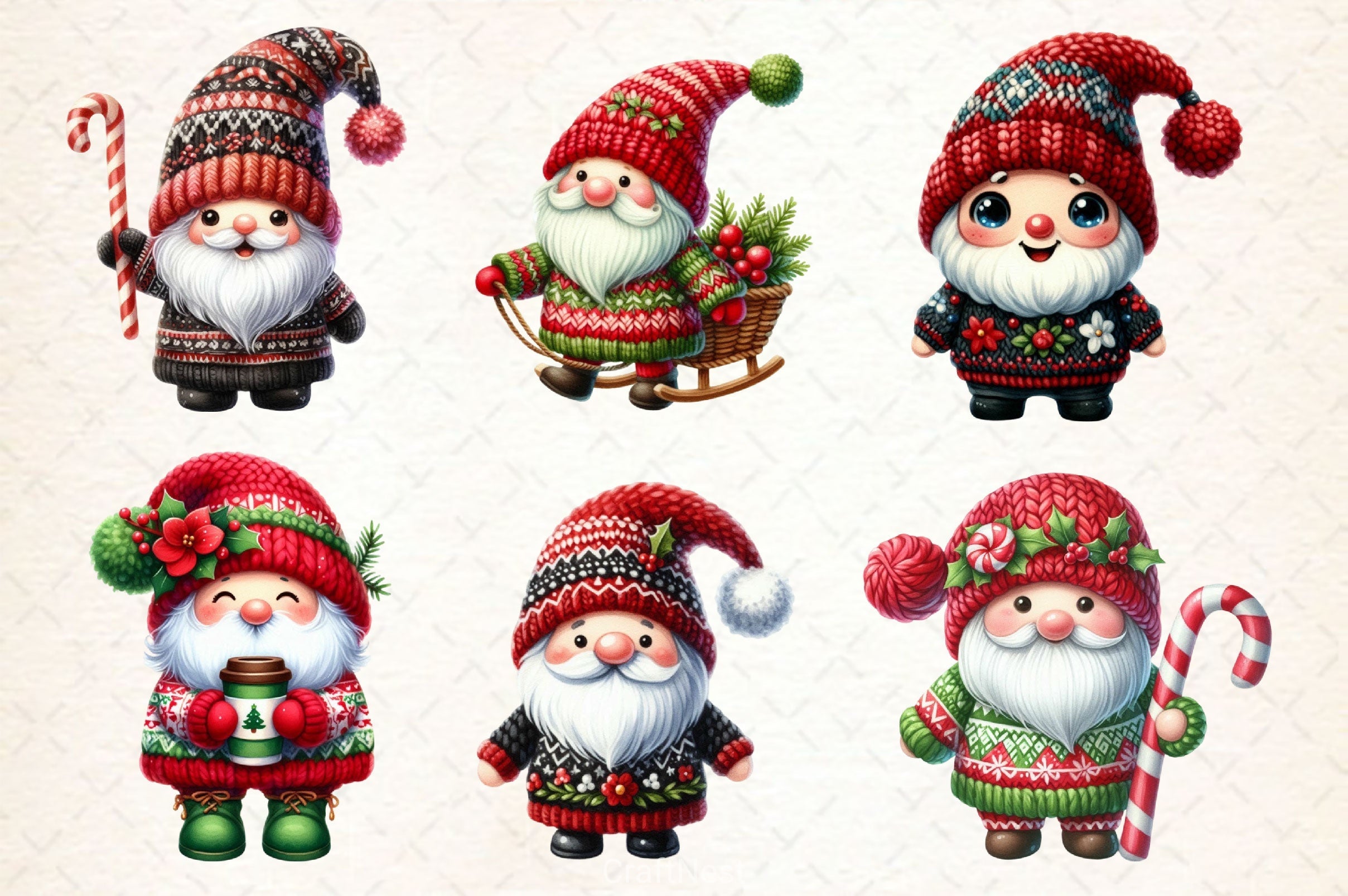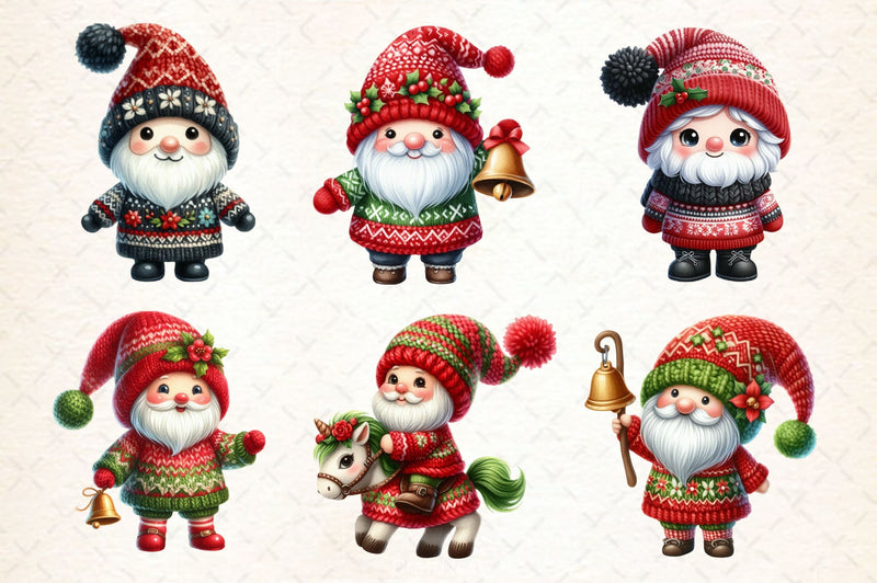 Magic with this Cute Christmas Gnome Clipart Bundle, featuring adorable holiday garden creature designs, perfect for enchanted Christmas crafts.