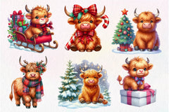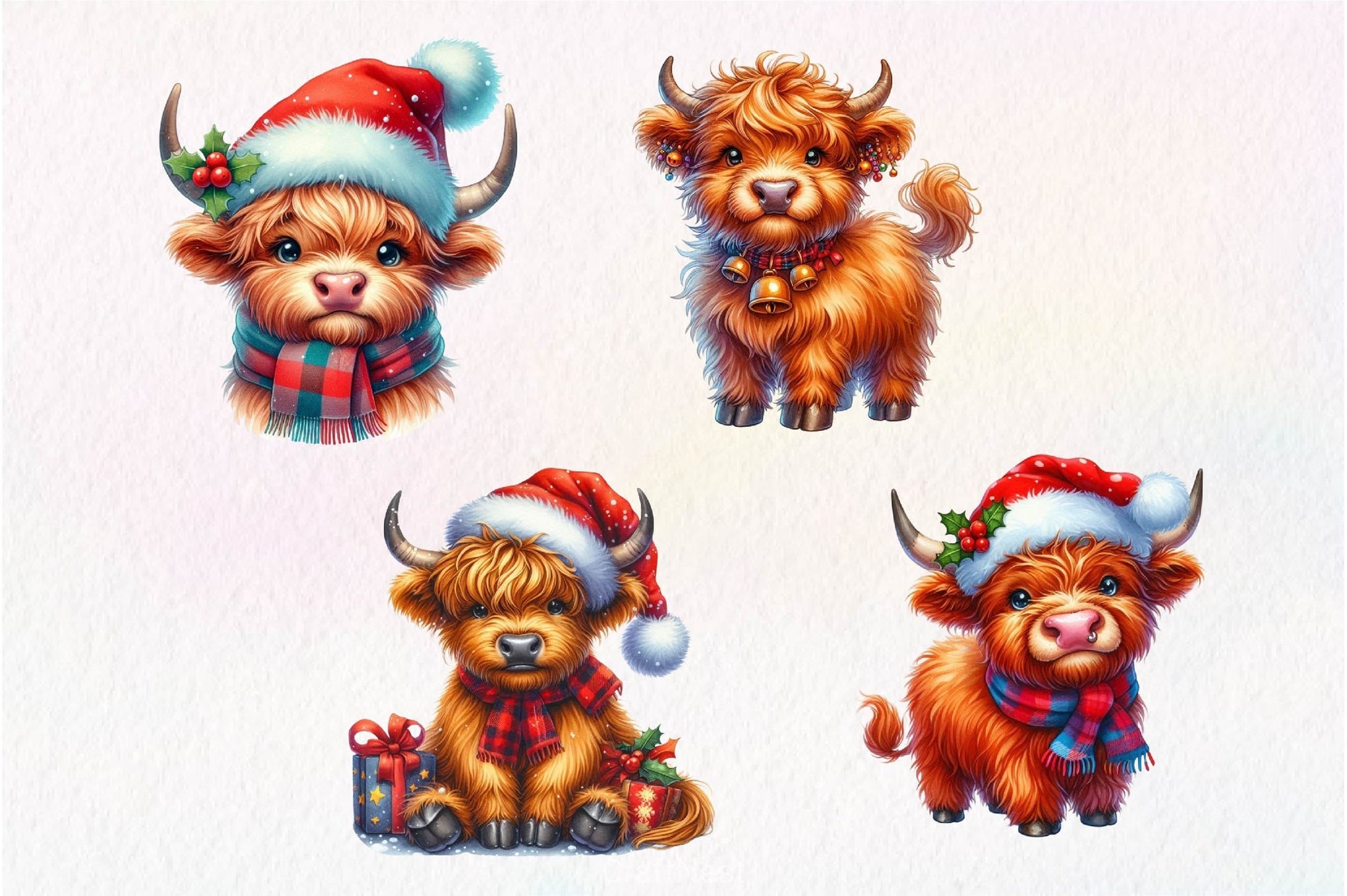 Moo with this Cute Christmas Highland Cow Clipart Bundle, featuring festive bovine designs, perfect for farm Christmas crafts.