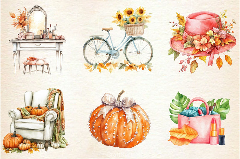 Girly with this Cute Coquette Autumn Clipart Bundle, featuring feminine fall designs, perfect for stylish seasonal crafts.
