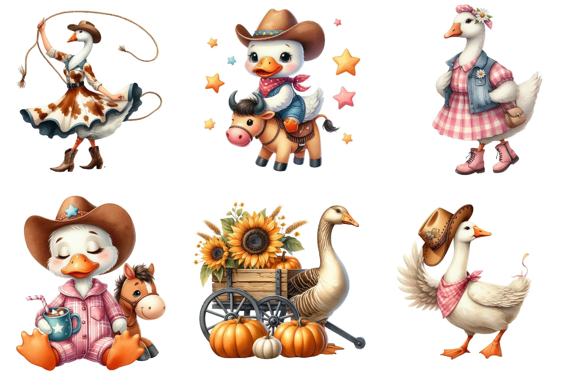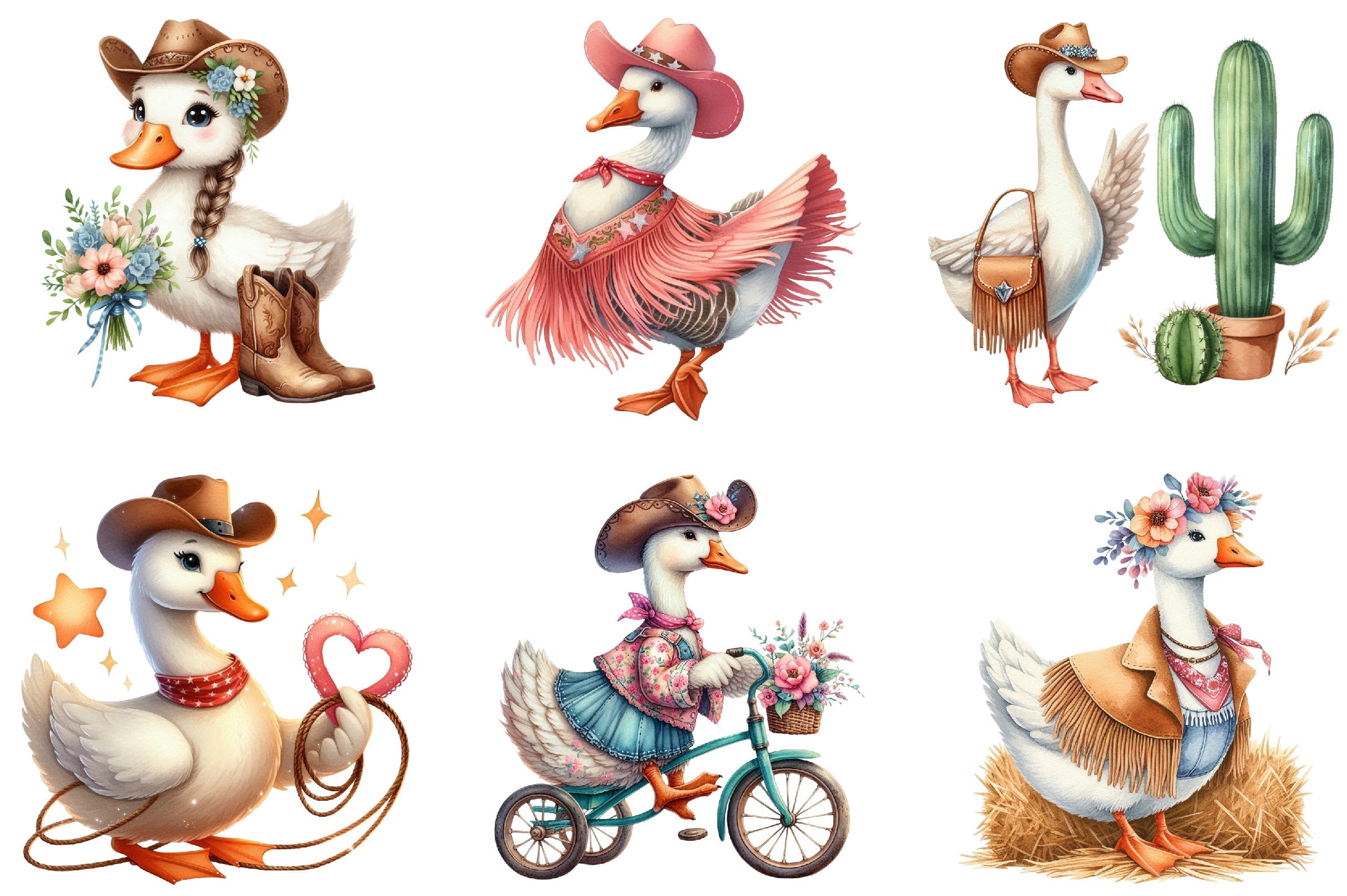 Discover the charm of our Cute Cowgirl Goose Clipart Bundle, perfect for adding a whimsical touch to your creative projects. Featuring delightful cowgirl geese designs, this collection is ideal for crafting unique invitations, scrapbooking, and more. Unleash your creativity with these adorable illustrations, perfect for nursery decor and themed party supplies. Elevate your designs with this versatile clipart set, ensuring your projects stand out with a playful, rustic flair.