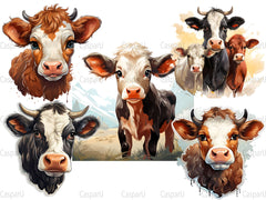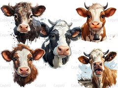 Delight in the gentle charm of our Cute Cows clip art. These endearing digital illustrations showcase adorable cows, grazing in verdant pastures or peeking curiously over fences, perfect for adding a touch of rural tranquility and bovine beauty to your designs, whether for children's books, farm-themed decorations, or agricultural artwork, celebrating the serene allure of cows in delightful detail.