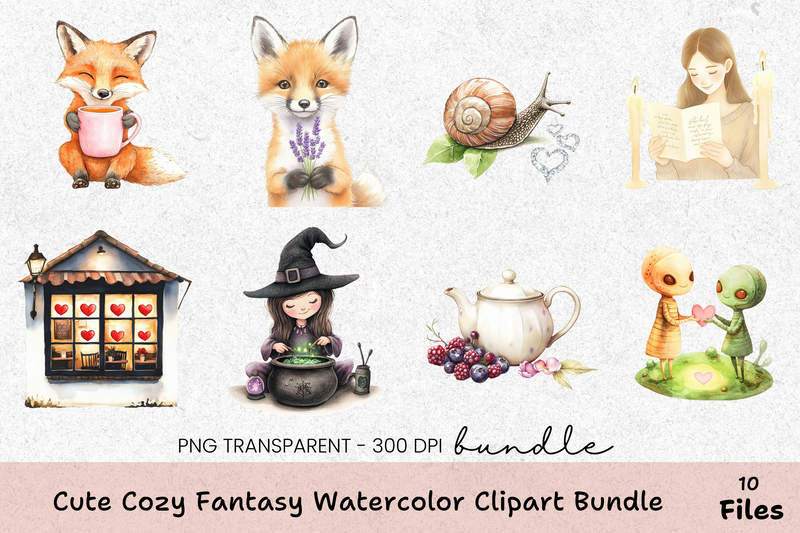 Transform your DIY projects with our Cozy Fantasy Clipart Bundle, featuring charming illustrations that bring a touch of magic to any creative endeavor.