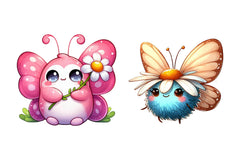 Cute Daisy Cartoon Spring Butterfly Clipart Bundle